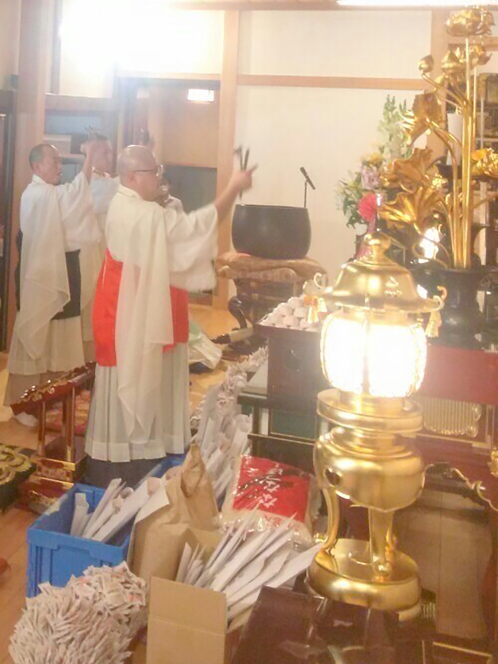 本堂では、たくさんの僧侶が一同に集まり、皆様の願いを込めてお経をあげます。